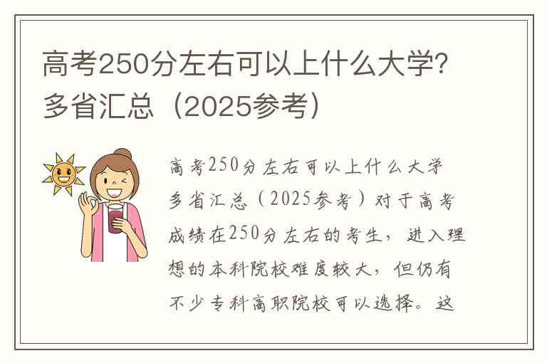 高考250分左右可以上什么大学 多省汇总(2025参考)