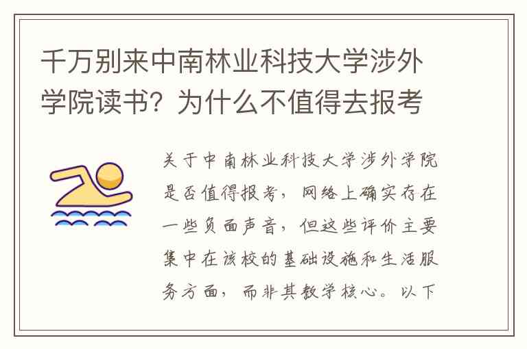 关于中南林业科技大学涉外学院是否值得报考,网络上确实存在一些负面声音,但这些评价主要集中在该校的基础设施和生活服务方面,而非其教学核心。以下将从优势与争议两个维度,为你呈现一个更为客观的图景。