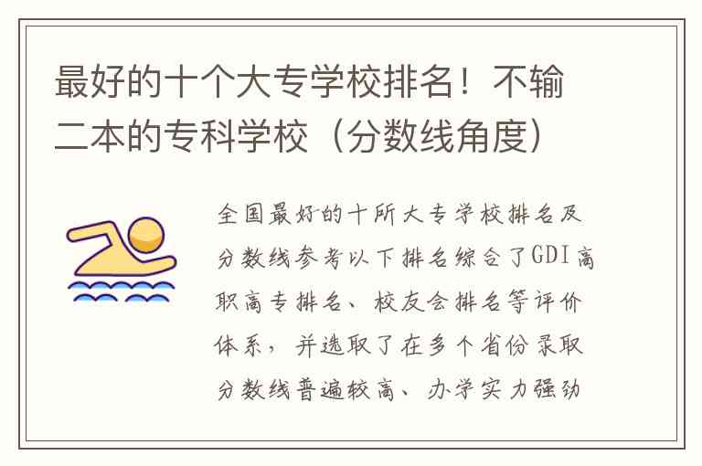 以下排名综合了GDI高职高专排名、校友会排名等评价体系,并选取了在多个省份录取分数线普遍较高、办学实力强劲的专科院校。这些院校的王牌专业录取分数线经常超过本科线,被称为“专科中的小清华”。