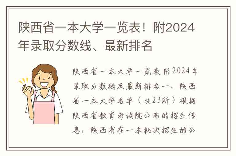 一、陕西省一本大学名单(共23所)