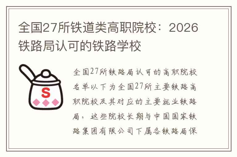 全国27所铁路局认可的高职院校名单