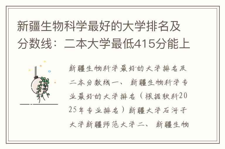 一、 新疆生物科学专业最好的大学排名(根据软科2025年专业排名)