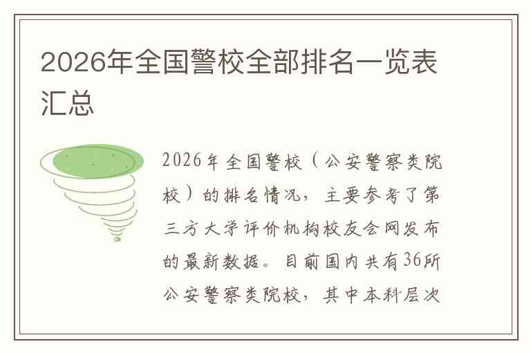 以下是基于2026年校友会中国大学排名整理的全国警校排名一览表。