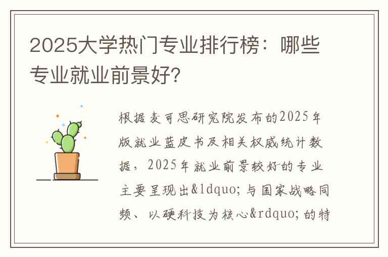 总结来说,2025年就业前景好的专业主要分为三类:一是直接服务于国家战略的“硬核”工科专业,这类专业就业率高、薪资优厚;二是医学等专业性极强、职业发展稳定的专业,这类专业满意度高;三是与新兴文化产业结合紧密的人文社科专业,它们提供了灵活且具有创造力的职业路径。考生在选择时,建议将个人兴趣与这些宏观趋势相结合,进行综合考量。