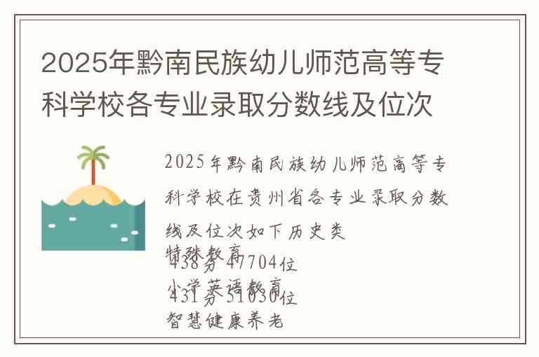 2025年黔南民族幼儿师范高等专科学校在贵州省各专业录取分数线及位次如下
