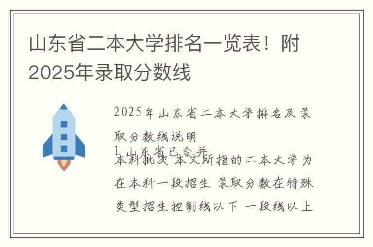 1 山东省已合并本科批次 本文所指的二本大学为在本科一段招生 录取分数在特殊类型招生控制线以下 一段线以上的省内非双一流高校