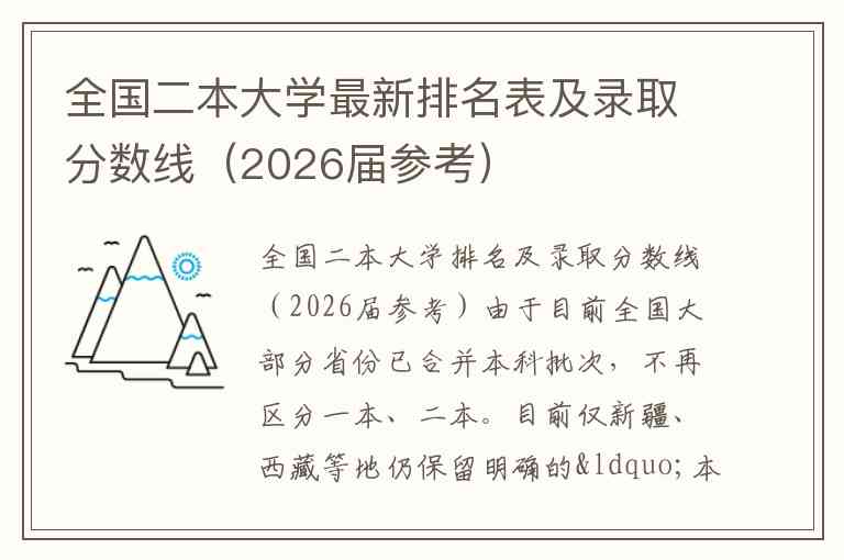 全国二本大学排名及录取分数线(2026届参考)