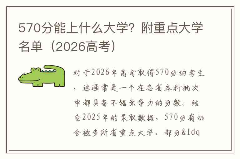 对于2026年高考取得570分的考生,这通常是一个在各省本科批次中都具备不错竞争力的分数。结合2025年的录取数据,570分有机会被多所省重点大学、部分“双一流”建设高校以及地理位置优越的公办本科院校录取。