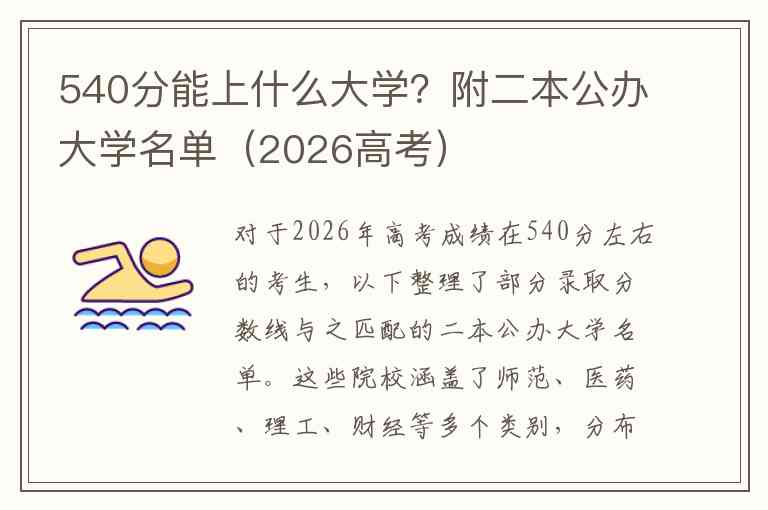 对于2026年高考成绩在540分左右的考生,以下整理了部分录取分数线与之匹配的二本公办大学名单。这些院校涵盖了师范、医药、理工、财经等多个类别,分布在不同的省份,可以作为志愿填报的参考。