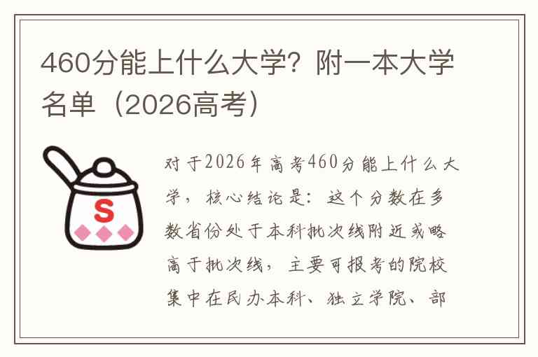 对于2026年高考460分能上什么大学,核心结论是:这个分数在多数省份处于本科批次线附近或略高于批次线,主要可报考的院校集中在民办本科、独立学院、部分公办本科的中外合作办学项目以及优质的公办专科院校。