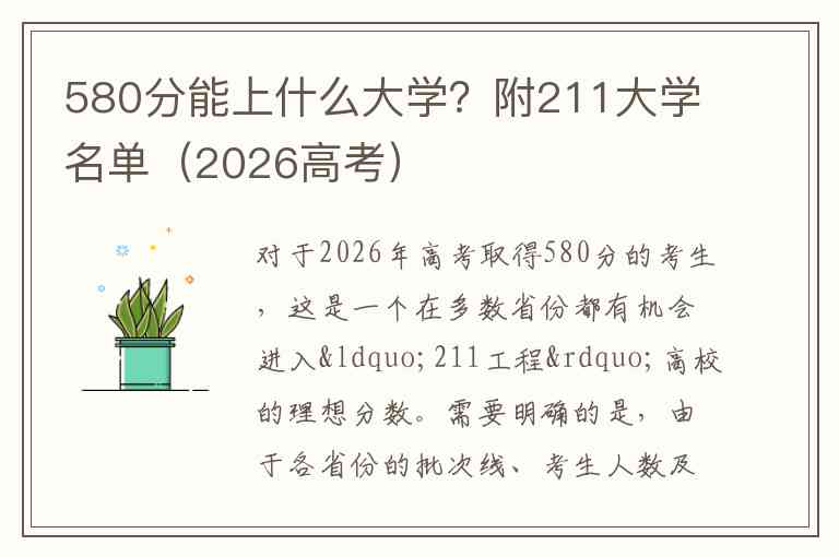以下结合2026年最新报考形势,为你梳理580分可报考的211大学层次及完整名单。