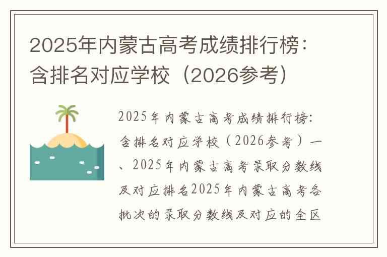 2025年内蒙古高考成绩排行榜:含排名对应学校(2026参考)