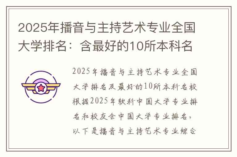 2025年播音与主持艺术专业全国大学排名及最好的10所本科名校