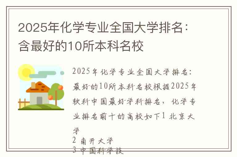 根据2025年软科中国最好学科排名,化学专业排名前十的高校如下