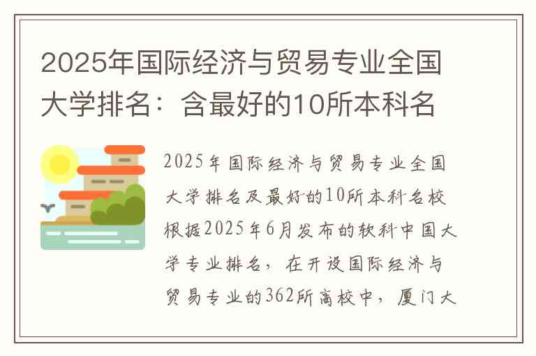 2025年国际经济与贸易专业全国大学排名及最好的10所本科名校