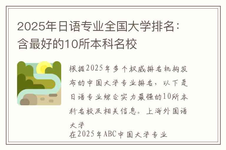 根据2025年多个权威排名机构发布的中国大学专业排名,以下是日语专业综合实力最强的10所本科名校及相关信息。