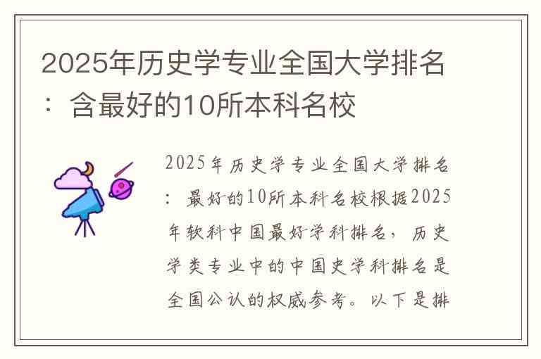 2025年历史学专业全国大学排名:最好的10所本科名校