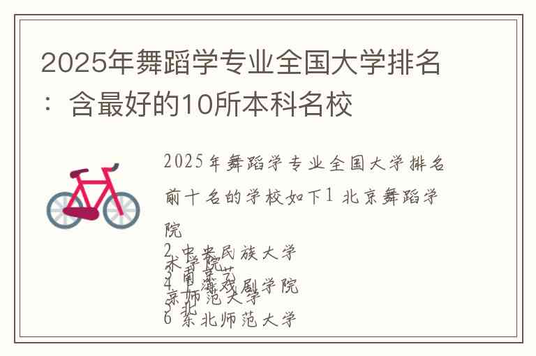 1 北京舞蹈学院2 中央民族大学3 南京艺术学院4 上海戏剧学院5 北京师范大学6 东北师范大学7 首都师范大学8 新疆艺术学院9 四川师范大学10 浙江音乐学院
