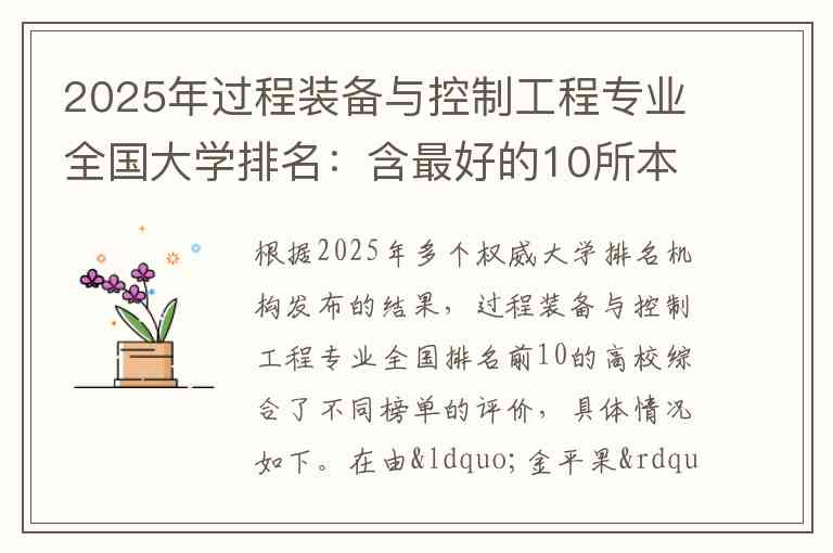 在校友会2025中国大学过程装备与控制工程专业排名(研究型)中,专业实力最强、办学水平最高的10所高校为:
