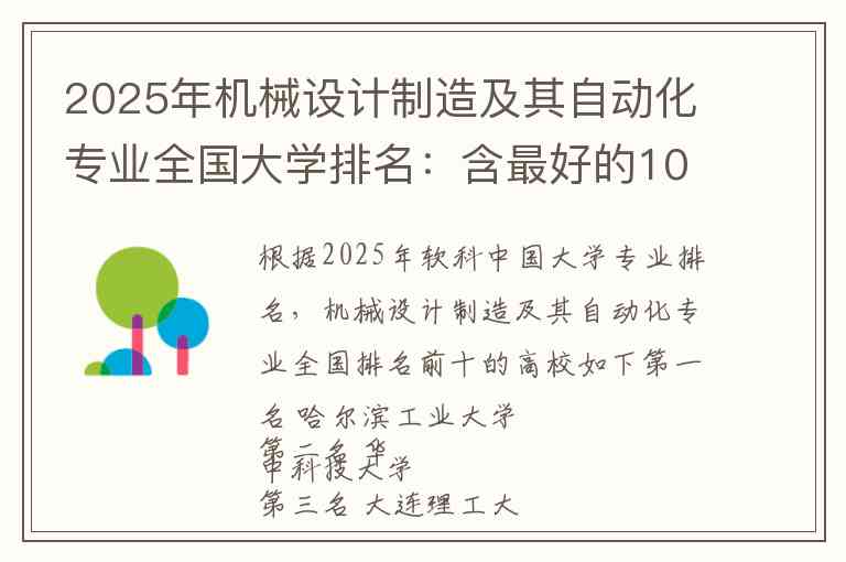 根据2025年软科中国大学专业排名,机械设计制造及其自动化专业全国排名前十的高校如下