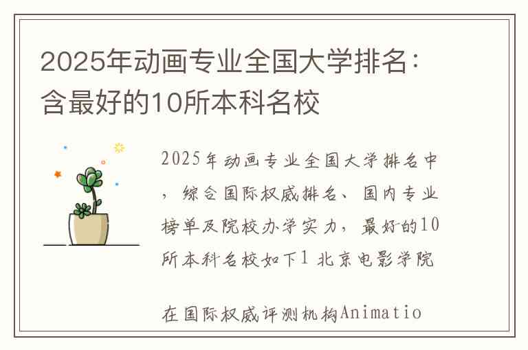 2025年动画专业全国大学排名中,综合国际权威排名、国内专业榜单及院校办学实力,最好的10所本科名校如下