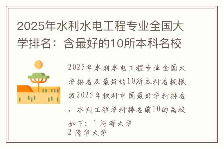 2025年水利水电工程专业全国大学排名及最好的10所本科名校