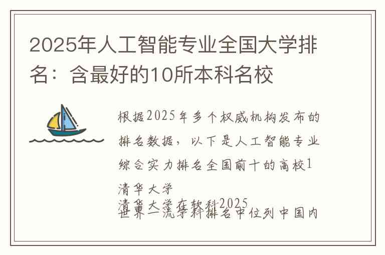 根据2025年多个权威机构发布的排名数据,以下是人工智能专业综合实力排名全国前十的高校