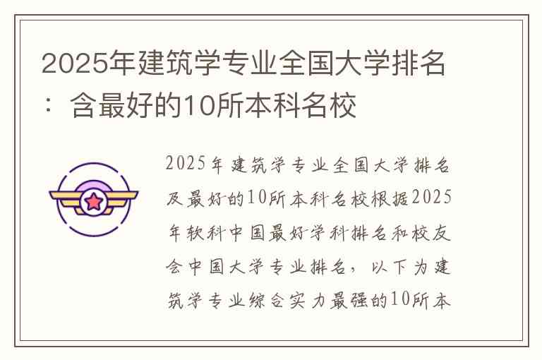 2025年建筑学专业全国大学排名及最好的10所本科名校