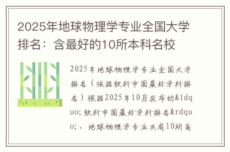 根据2025年10月发布的“软科中国最好学科排名”,地球物理学专业共有10所高校上榜,以下是排名前10的本科名校: