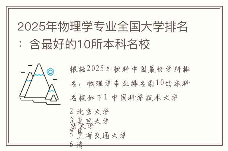 根据2025年软科中国最好学科排名,物理学专业排名前10的本科名校如下