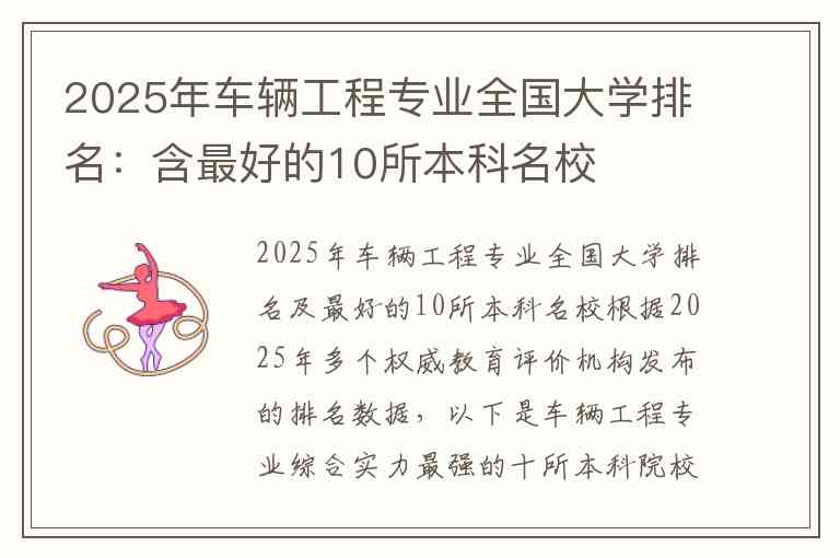 2025年车辆工程专业全国大学排名及最好的10所本科名校