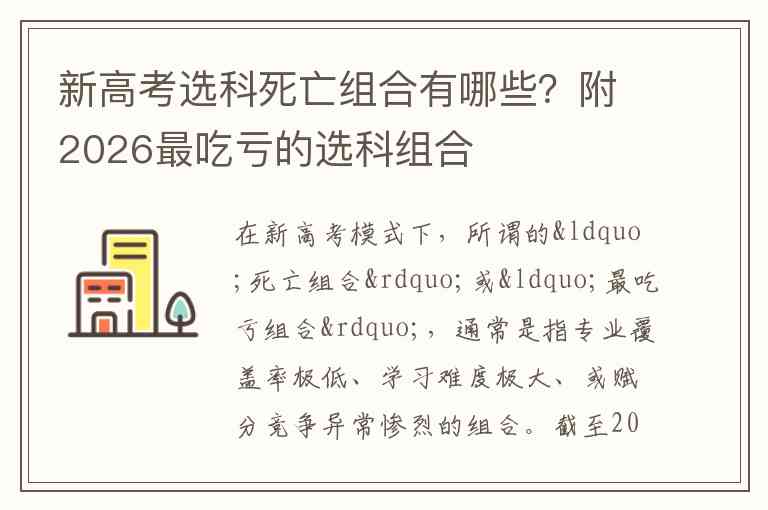 在新高考模式下,所谓的“死亡组合”或“最吃亏组合”,通常是指专业覆盖率极低、学习难度极大、或赋分竞争异常惨烈的组合。截至2026届考生,结合最新的选科指引要求,以下几类组合普遍被认为是高风险选项: