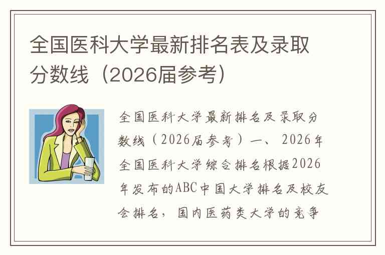根据2026年发布的ABC中国大学排名及校友会排名,国内医药类大学的竞争格局呈现出“顶尖院校领跑、区域强校特色发展”的态势。