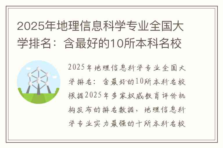根据2025年多家权威教育评价机构发布的排名数据,地理信息科学专业实力最强的十所本科名校综合不同榜单结果如下