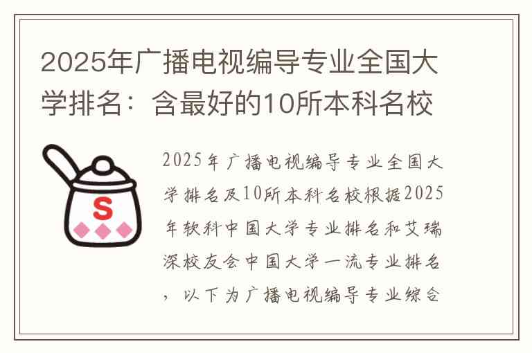 2025年广播电视编导专业全国大学排名及10所本科名校