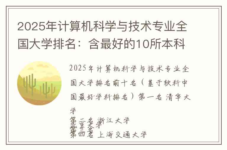 2025年计算机科学与技术专业全国大学排名前十名(基于软科中国最好学科排名)