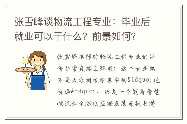 张雪峰老师对物流工程专业的评价非常直接且鲜明:这个专业绝不是大众刻板印象中的“送快递”,而是一个随着智慧物流和全球供应链发展而极具潜力的“技术型”专业。他认为,物流工程的核心在于用工程技术、大数据和智能化手段,对物流系统进行规划、设计和优化,实现“降本增效”。未来十年,谁能用技术把物流成本降低1%,谁就能创造巨大的价值。