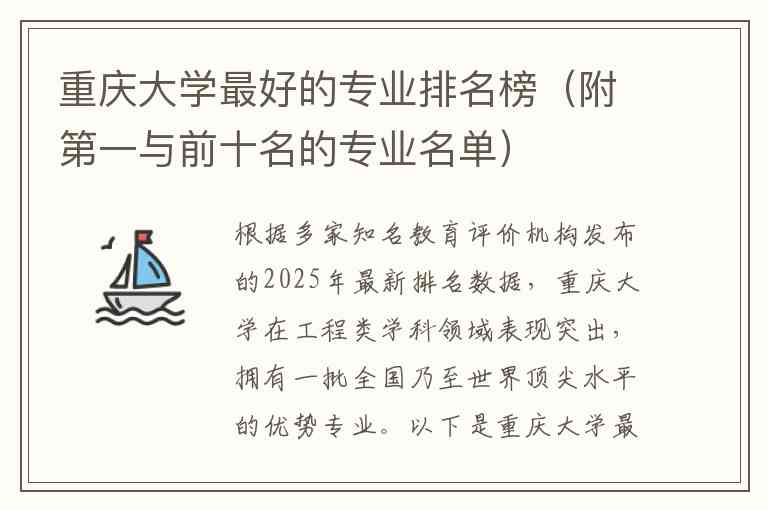 根据多家知名教育评价机构发布的2025年最新排名数据,重庆大学在工程类学科领域表现突出,拥有一批全国乃至世界顶尖水平的优势专业。
