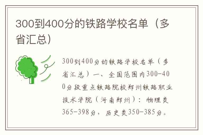 300到400分的铁路学校名单(多省汇总)