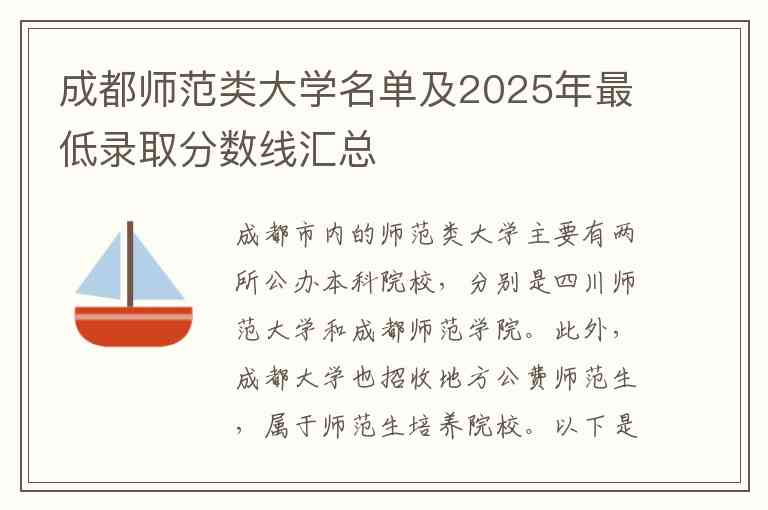 成都市内的师范类大学主要有两所公办本科院校,分别是四川师范大学和成都师范学院。此外,成都大学也招收地方公费师范生,属于师范生培养院校。
