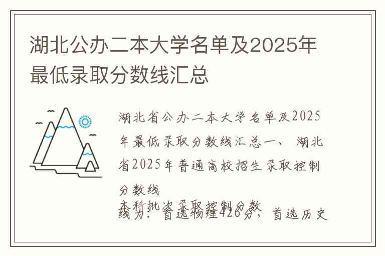 湖北省公办二本大学名单及2025年最低录取分数线汇总