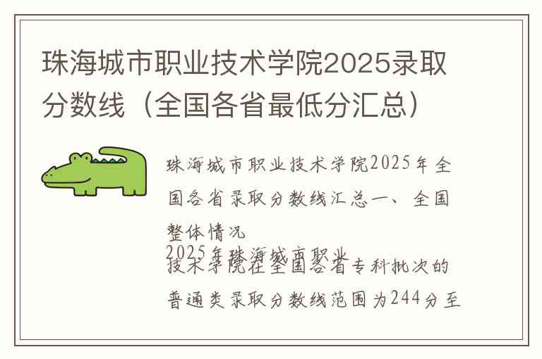 珠海城市职业技术学院2025年全国各省录取分数线汇总
