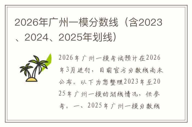 2026年广州一模考试预计在2026年3月进行,目前官方分数线尚未公布。以下为您整理2023年至2025年广州一模的划线情况,供参考。