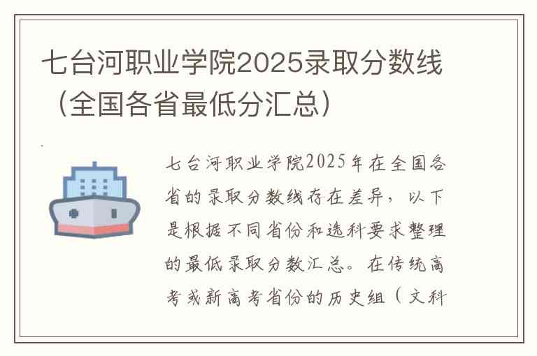 七台河职业学院2025年在全国各省的录取分数线存在差异,以下是根据不同省份和选科要求整理的最低录取分数汇总。