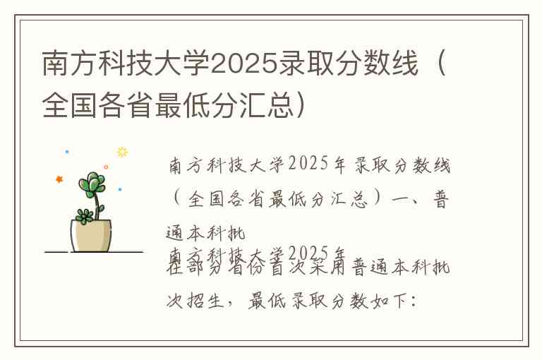 南方科技大学2025年录取分数线(全国各省最低分汇总)